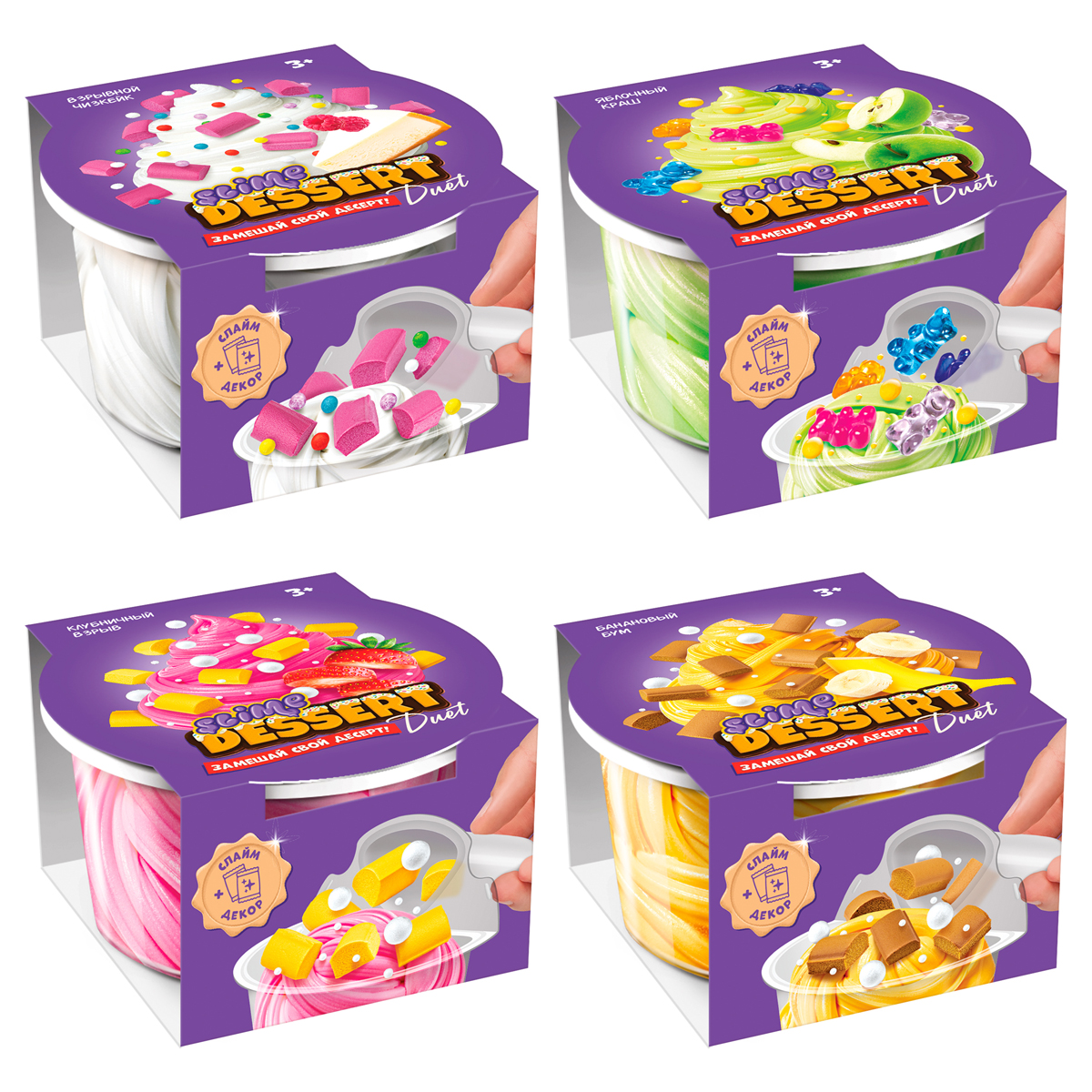Слайм с добавками для замешивания Slime "Dessert Duet", банановый бум/клубничный взрыв/яблочный краш/взрывной чизкейк, ассорти