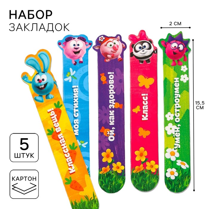 Закладки для книг, фигурные из картона, 5 шт. «Друзья», Смешарики