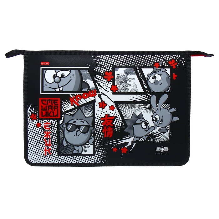 Папка для тетрадей А4, 340 х 245 х 75 мм, молния сверху, пластиковая, Hatber "Смешарики"