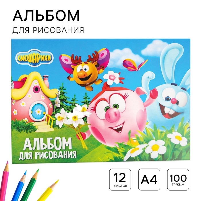 Альбом для рисования А4, 12 листов 100 г/м², на скрепке, Смешарики