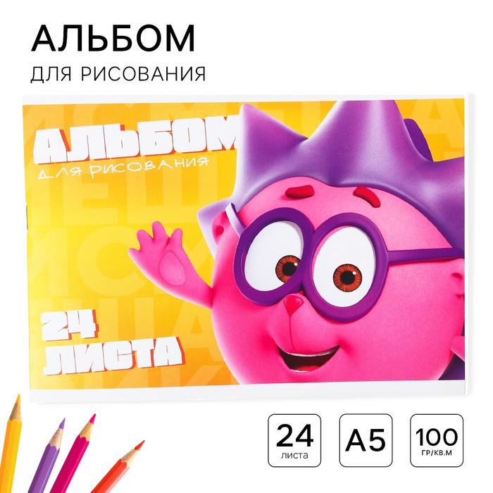 Альбом для рисования А5, 24 листа 100 г/м², на скрепке, Смешарики