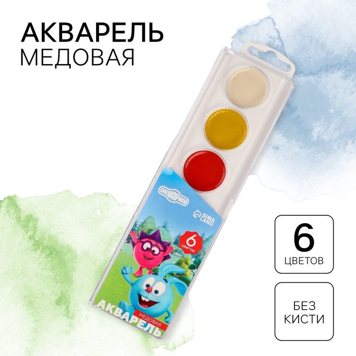 Краски акварельные "Крош и Ежик", 6 цветов, без кисти, Смешарики