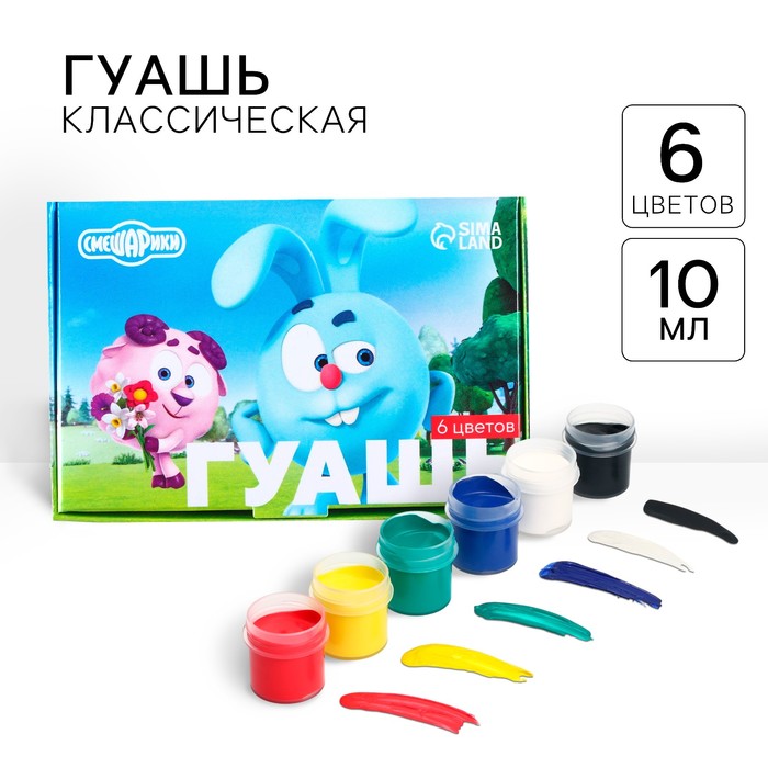 Гуашь 6 цветов по 20 мл, «Смешарики», карамельная