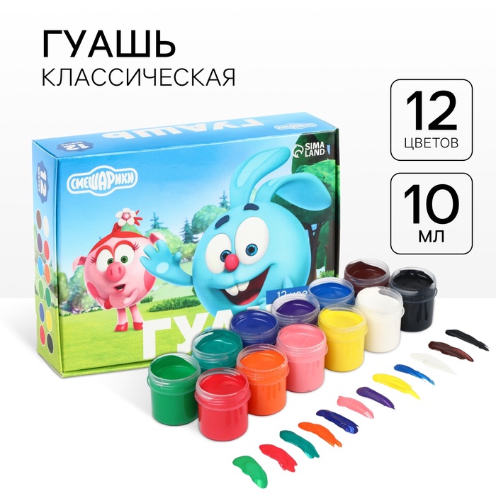 Гуашь 12 цветов по 20 мл, «Смешарики», карамельная