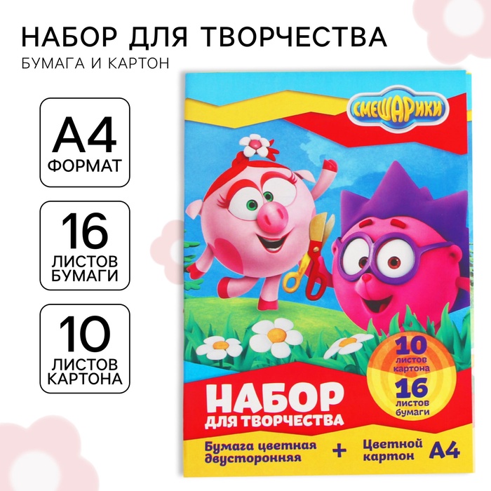 Набор "Смешарики" А4: 10л цветного одностороннего картона + 16л цветной двусторонней бумаги