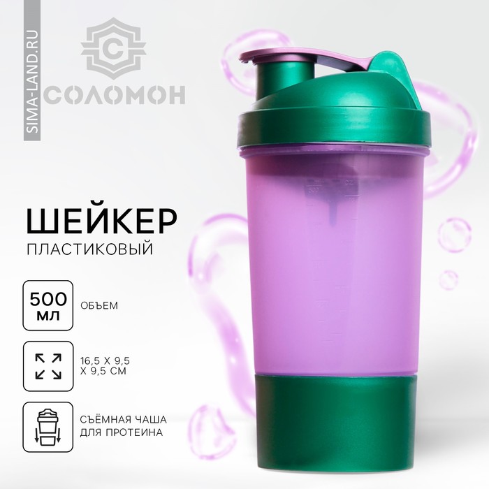 Шейкер спортивный с чашей под протеин, фиолетово-зелёный, 500 мл
