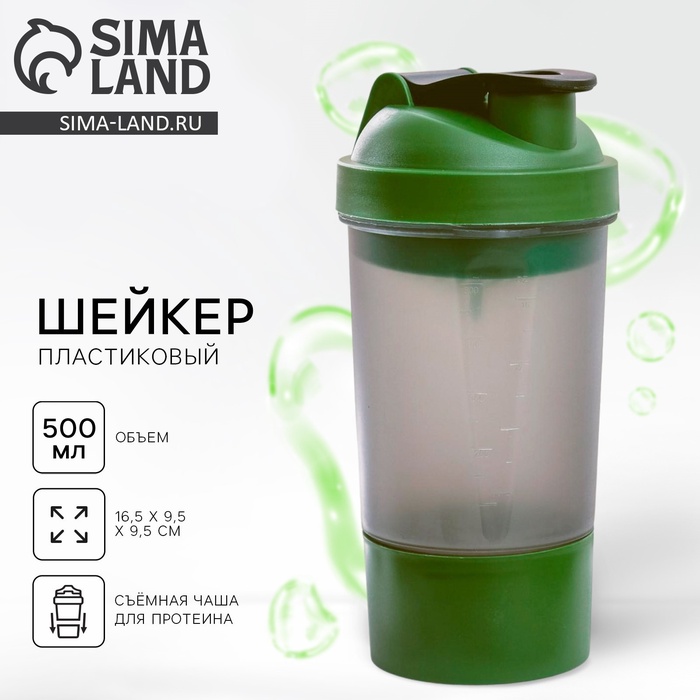 Шейкер спортивный с чашей под протеин, зелёный, 500 мл