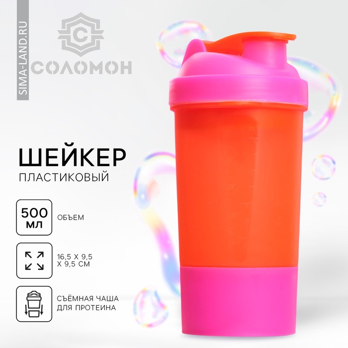 Шейкер спортивный с чашей под протеин, орнанжево-розовый, 500 мл