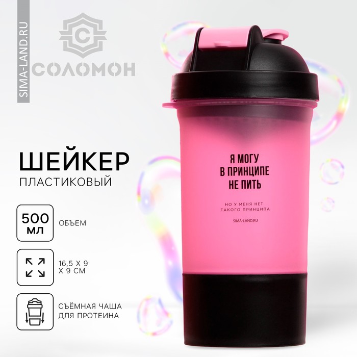 Шейкер спортивный «Я могу не пить», чёрно-розовый, с чашей под протеин, 500 мл