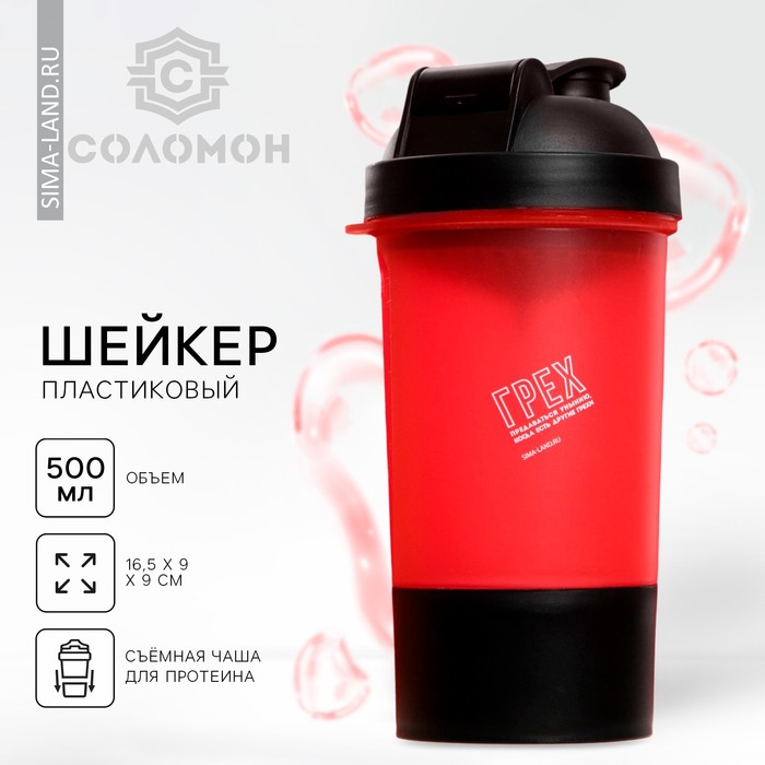 Шейкер спортивный «Грех», красно-чёрный, с чашей под протеин 500 мл
