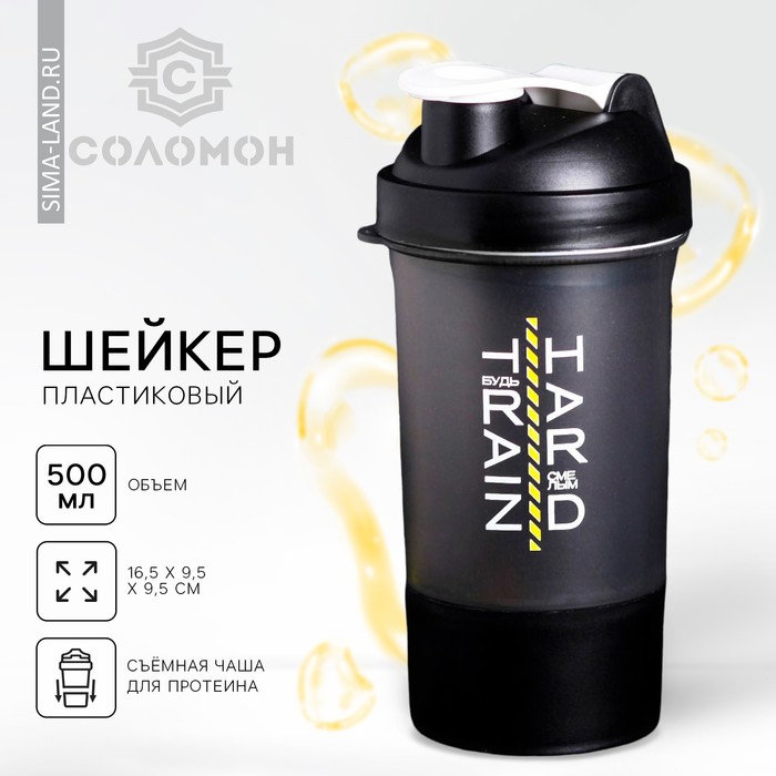 Шейкер спортивный с чашей под протеин, чёрный, 500 мл