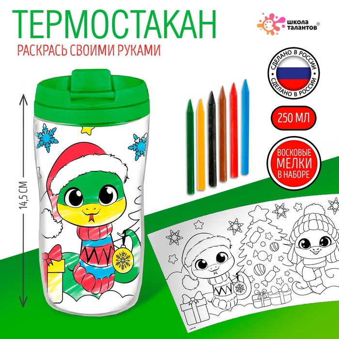 Термостакан детский «Змея. С Новым годом!», с вставкой-раскраской, зеленый, 250 мл