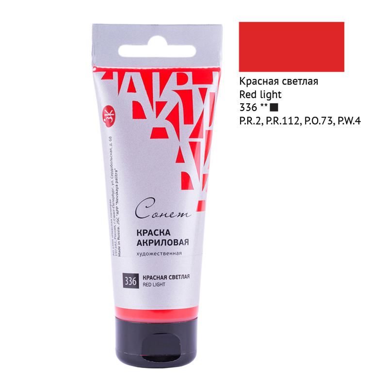 Краска акриловая художественная Сонет, 75мл, глянцевая, туба, красный светлый