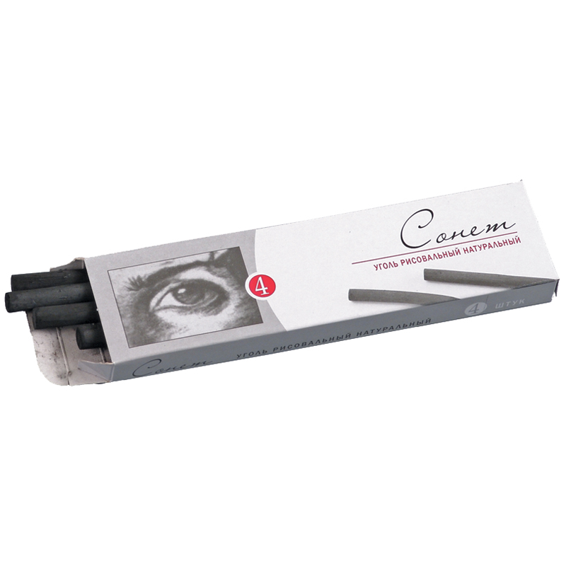 Уголь для рисования натуральный Сонет, Ø 8/10мм, 170мм, круглый, 4шт., картон. упаковка