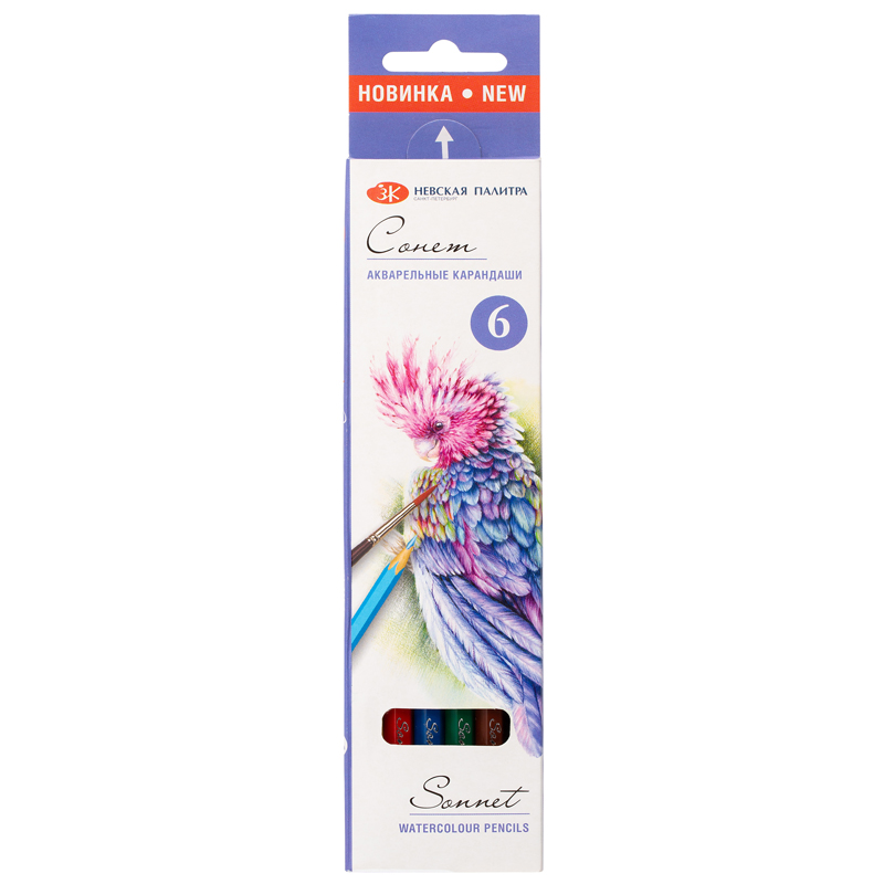 Карандаши акварельные Сонет, 06цв., заточен, картон, европодвес