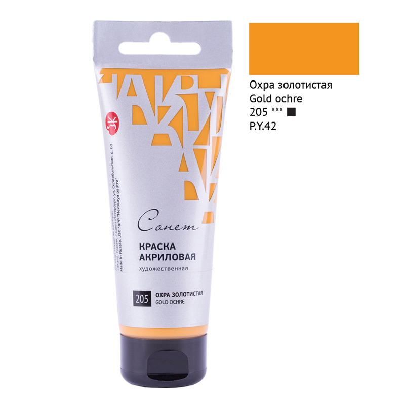Краска акриловая художественная Сонет, 75мл, глянцевая, туба, охра золотистая