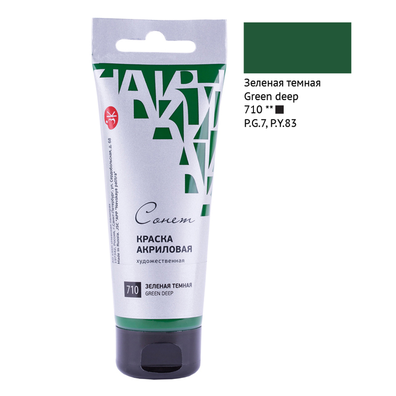 Краска акриловая художественная Сонет, 75мл, глянцевая, туба, зеленый темный