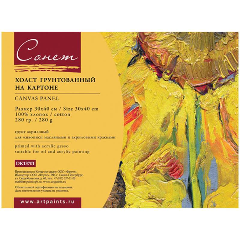 Холст на картоне Сонет, 35*50см, 100% хлопок, 280г/м2