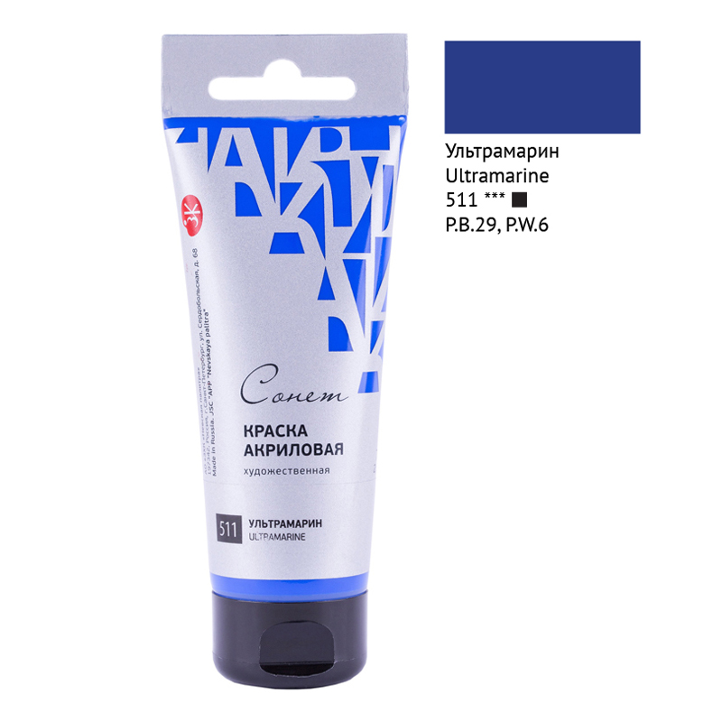 Краска акриловая художественная Сонет, 75мл, глянцевая, туба, ультрамарин