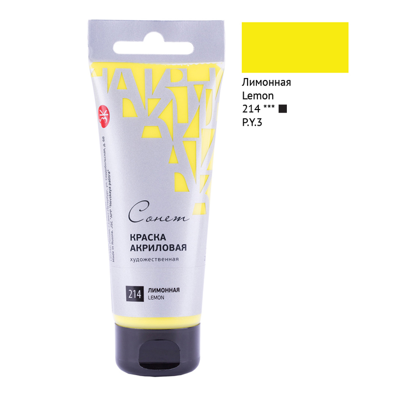 Краска акриловая художественная Сонет, 75мл, глянцевая, туба, лимонный