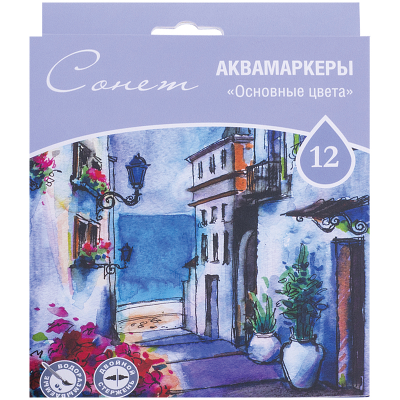 Набор аквамаркеров Сонет "Основные цвета", 12цв., картон упаковка, европодвес