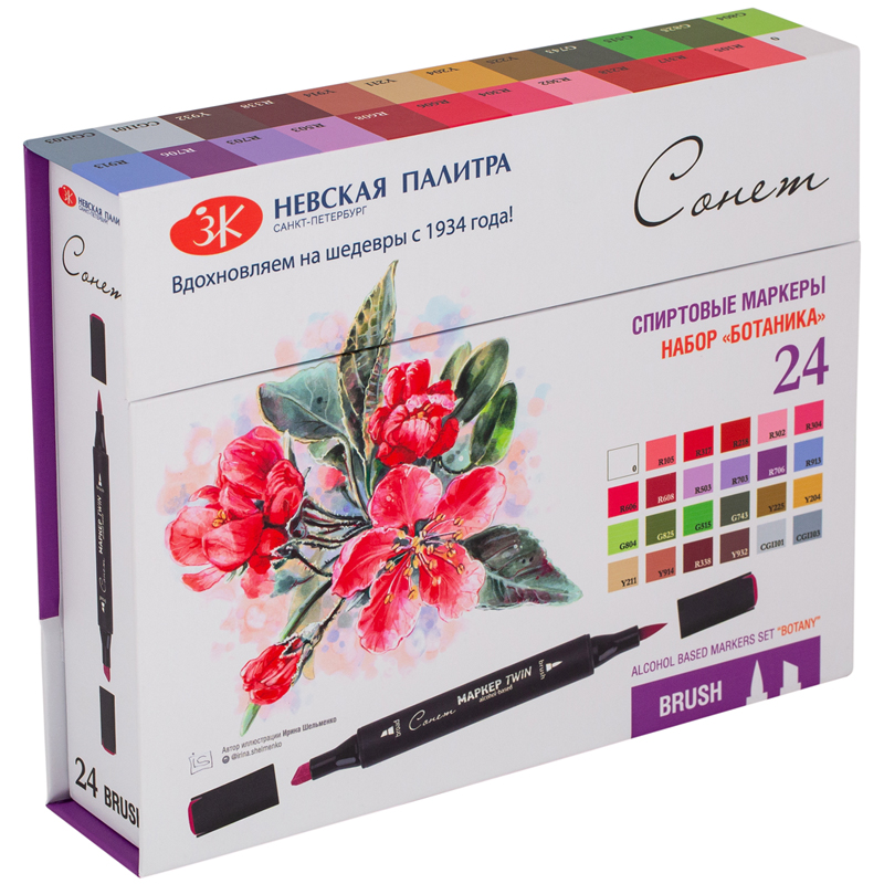 Набор спиртовых маркеров для творчества Сонет "Twin Brush. Ботаника", 24цв., скош./пулевидный