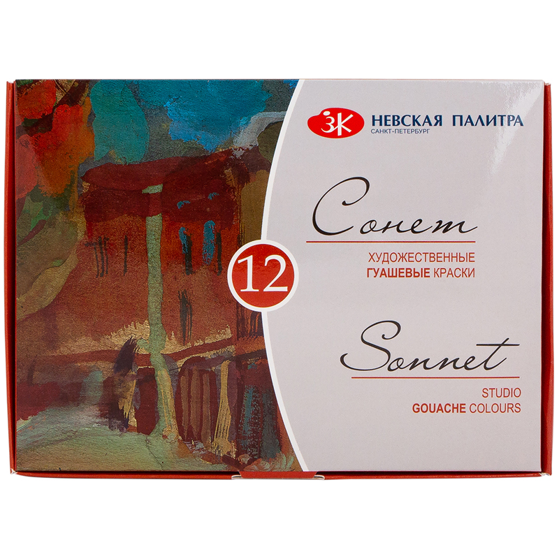 Гуашь художественная Сонет, 12 цветов, 20мл, картон