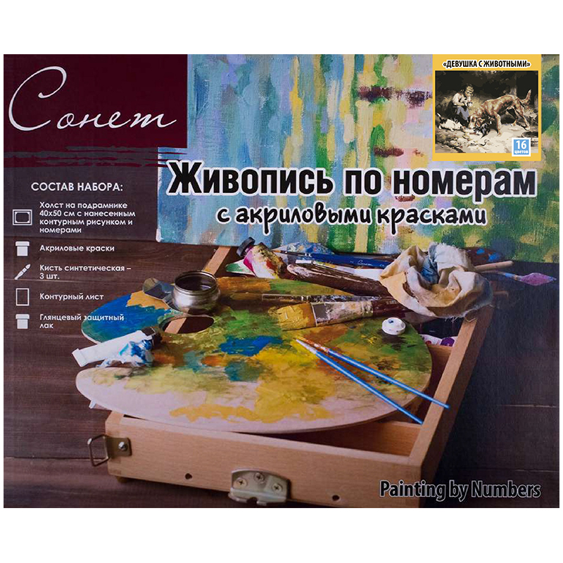Картина по номерам Сонет "Девушка с животными" 40*50см, с акриловыми красками, холст на подрамнике