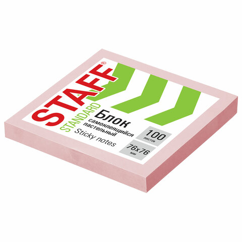 Блок самоклеящийся (стикеры) STAFF STANDARD, ПАСТЕЛЬНЫЙ 76х76 мм, розовый, 100 листов, 116576