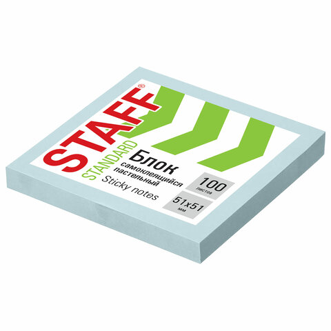 Блок самоклеящийся (стикеры) STAFF STANDARD, ПАСТЕЛЬНЫЙ 51х51 мм, голубой, 100 листов, 116578