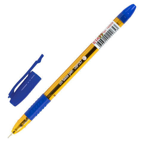 Ручка шариковая масляная STAFF "OBP-316", СИНЯЯ, корпус матовый, игольчатый узел 0,6 мм, линия письма 0,3 мм, 143021