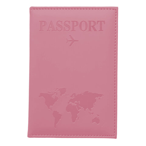 Обложка для паспорта "Passport map", экокожа soft touch, розовая, STAFF, 238759