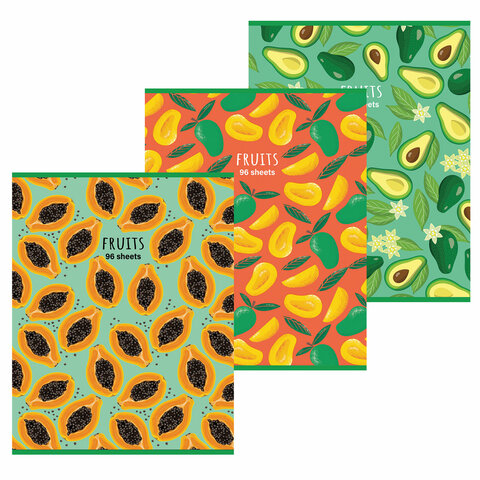 Тетрадь А4, 96 л., STAFF "Basic" скоба, клетка, офсет №2 ЭКОНОМ, обложка картон, "Fruity", 404069