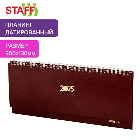 Планинг датированный 2025 300х130 мм, STAFF, гребень, обложка бумвинил, 64 л., бордовый, 116046