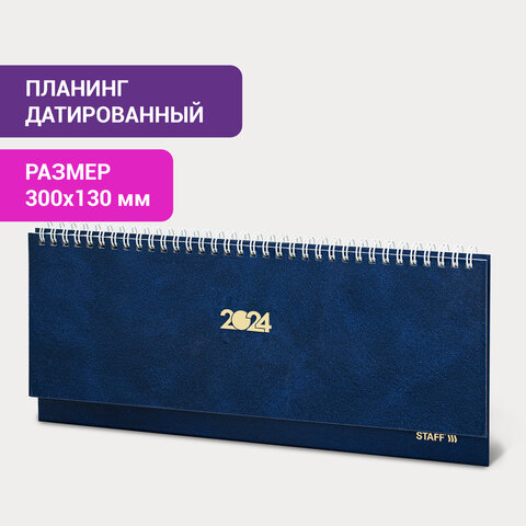 Планинг датированный 2024 300х130 мм, STAFF, гребень, обложка бумвинил, 64 л., синий, 115147