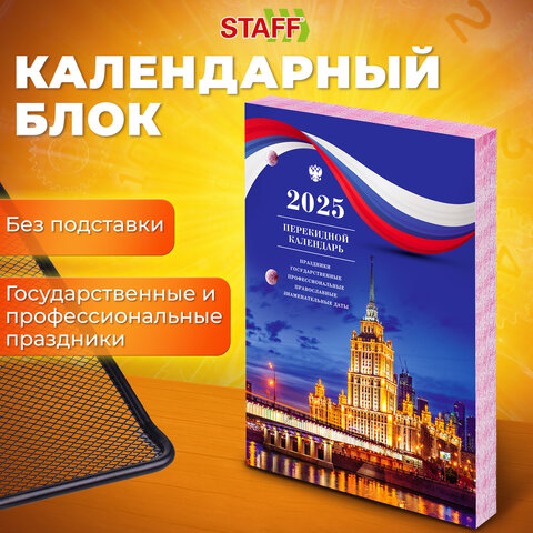 Календарь настольный перекидной на 2025 г., 160 л., блок газетный 1 краска, STAFF, Петербург, 116062