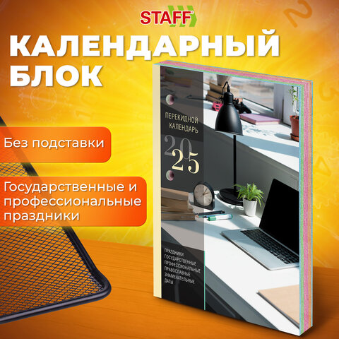 Календарь настольный перекидной на 2025 г., 160 л., блок газетный 2 краски, STAFF, ОФИС, 116061
