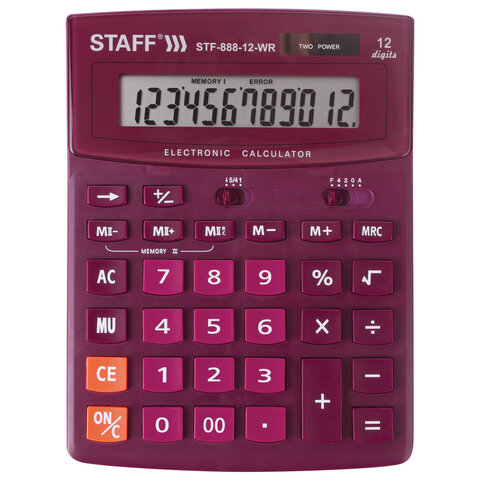 Калькулятор настольный STAFF STF-888-12-WR (200х150 мм) 12 разрядов, двойное питание, БОРДОВЫЙ, 250454