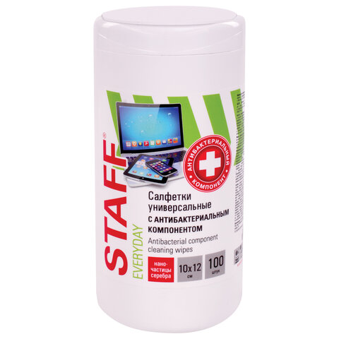 Салфетки АНТИБАКТЕРИАЛЬНЫЕ универсальные, STAFF "EVERYDAY", 100 шт., 513478