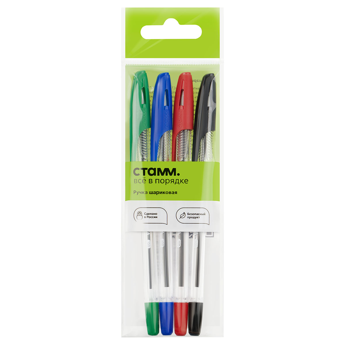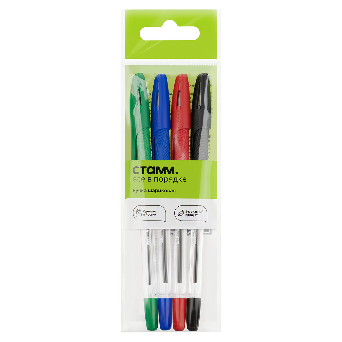 Набор шариковых ручек СТАММ "Орбита 100" 4шт., 4цв., 0,7мм, пакет с европодвесом