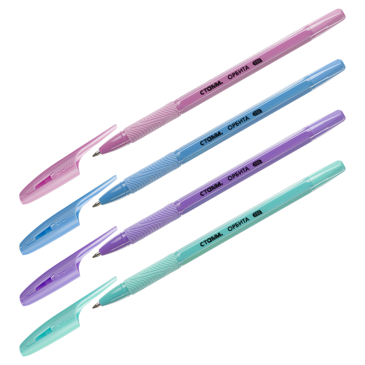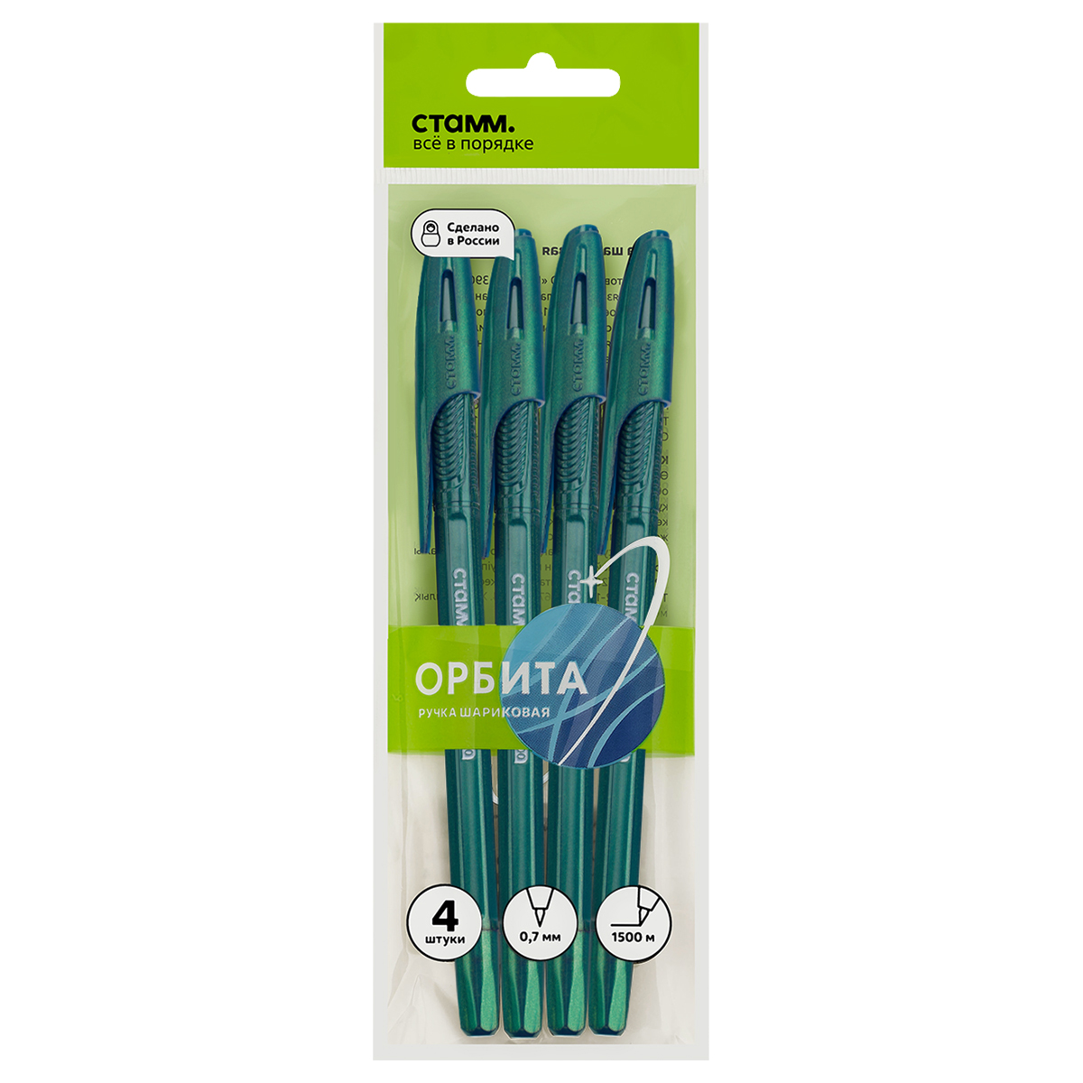Набор шариковых ручек СТАММ "Орбита 150" 4шт., 4цв., 0,7мм, пакет с европодвесом