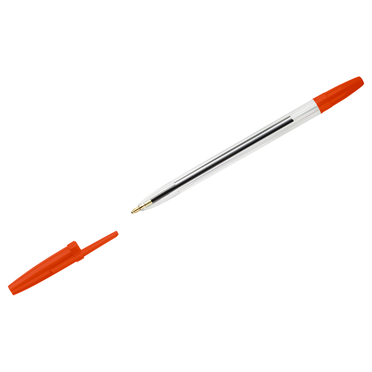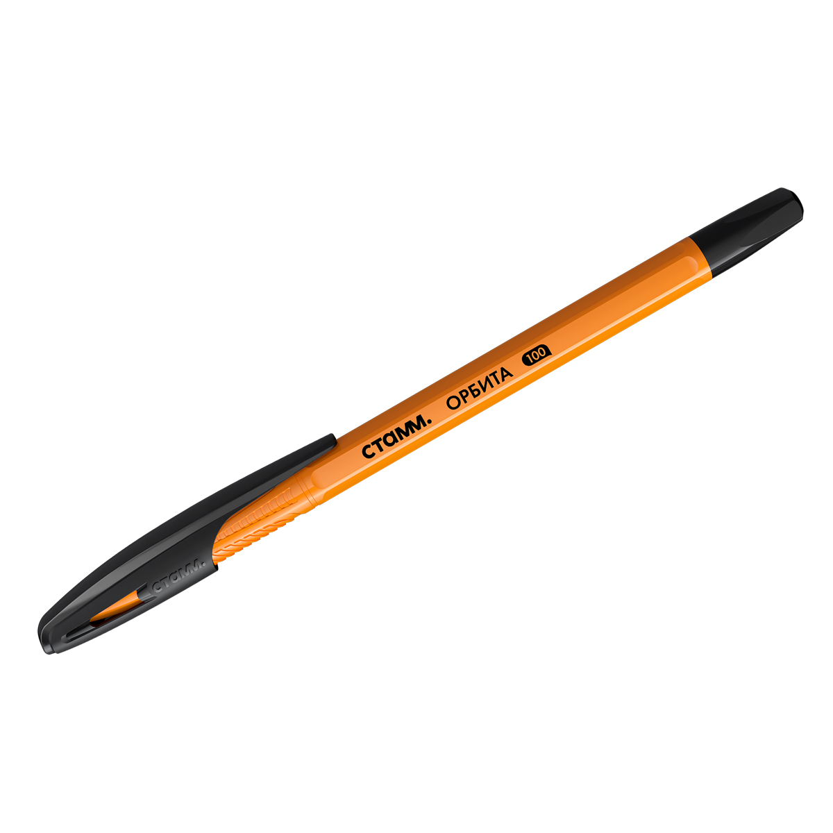 Ручка шариковая СТАММ "Орбита 100" черная, 0,7мм, оранжевый корпус