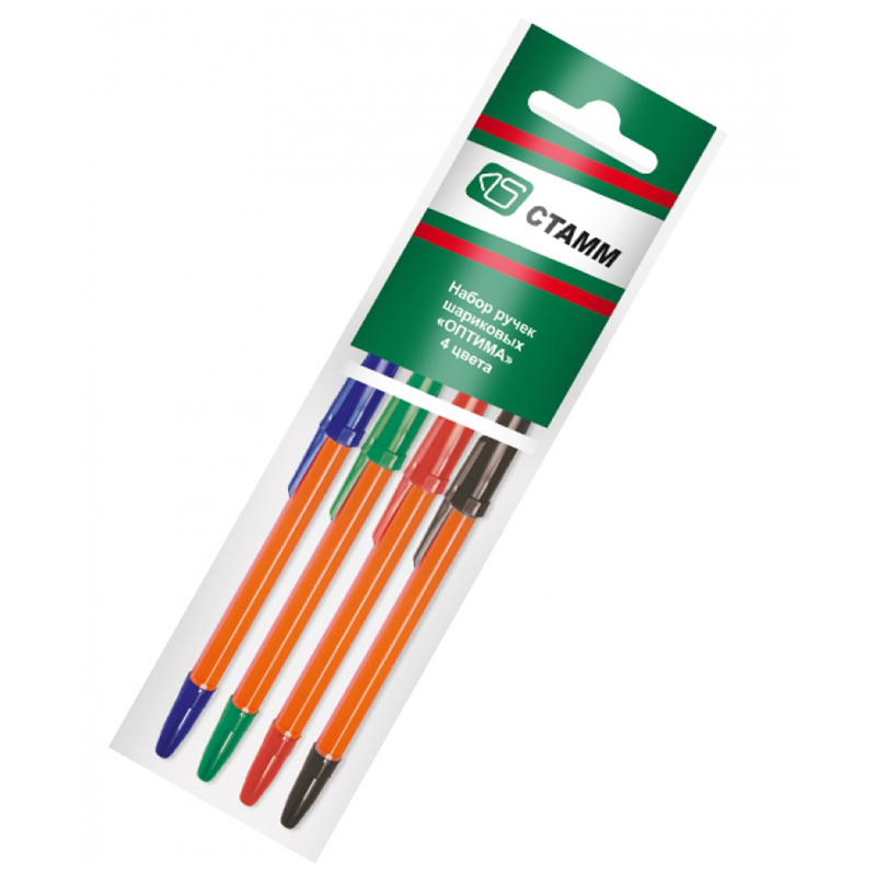 Набор шариковых ручек СТАММ "Оптима" 4шт., 04цв., 0,7мм, европодвес