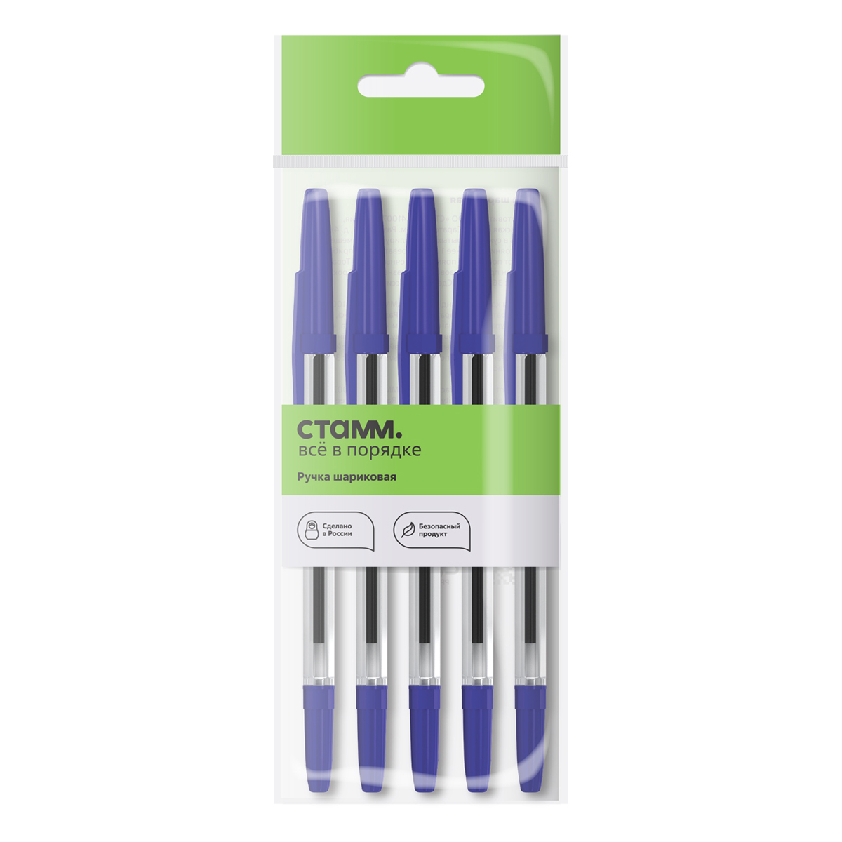 Ручка шариковая СТАММ "Оптима" 5шт., синие, 1,0мм, пакет с европодвесом