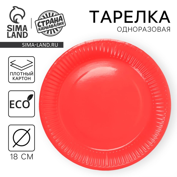 Тарелка одноразовая бумажная однотонная, цвет красный
