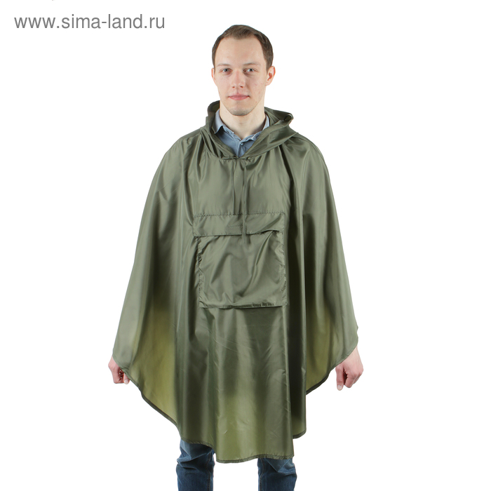 Плащ-дождевик с карманом, взрослый, водоотталкивающий, хаки, длина 100 см