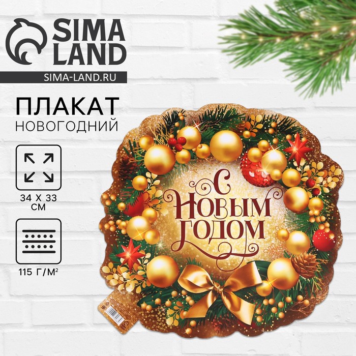 Плакат новогодний «С новым годом» на Новый год, 34 х 33 см., плотность 115 гр/кв.м