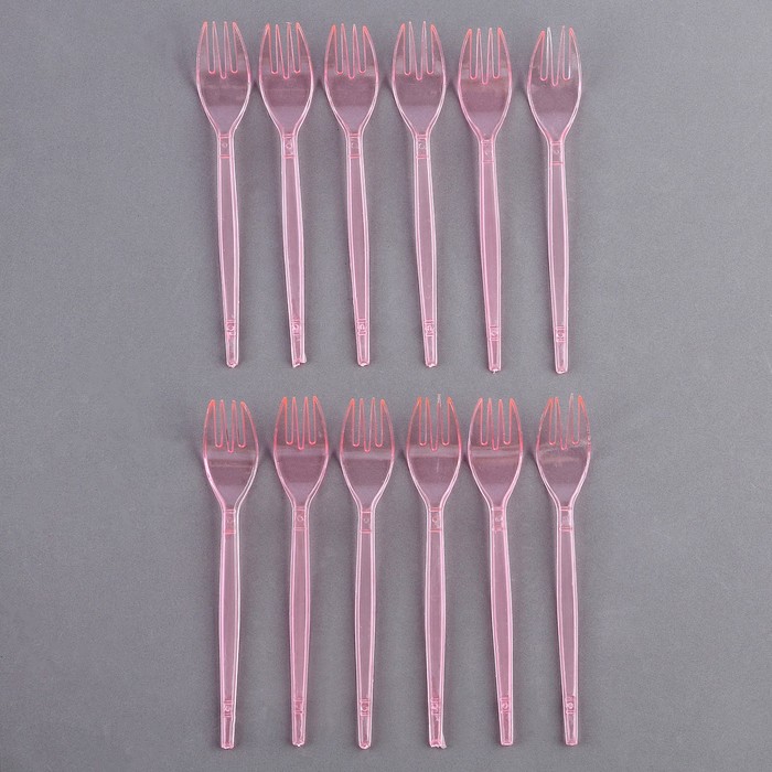 Вилки пластиковые, в наборе 12 шт., цвет розовый