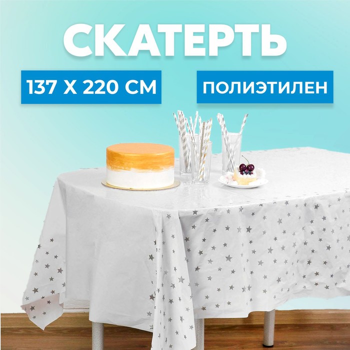 Скатерть «Звёзды», 137х220 см, цвет серебряный