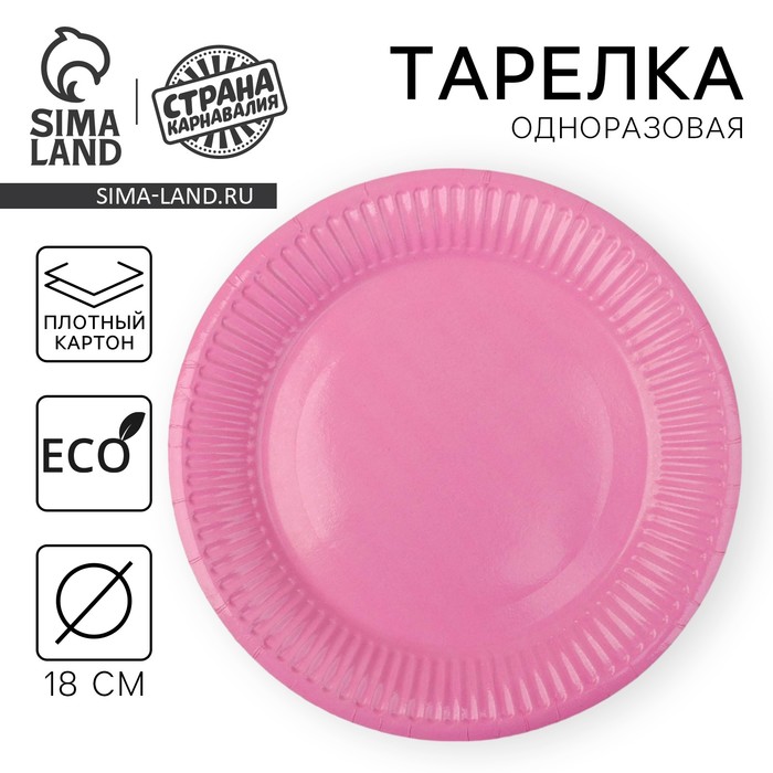 Тарелка одноразовая бумажная однотонная, цвет розовый